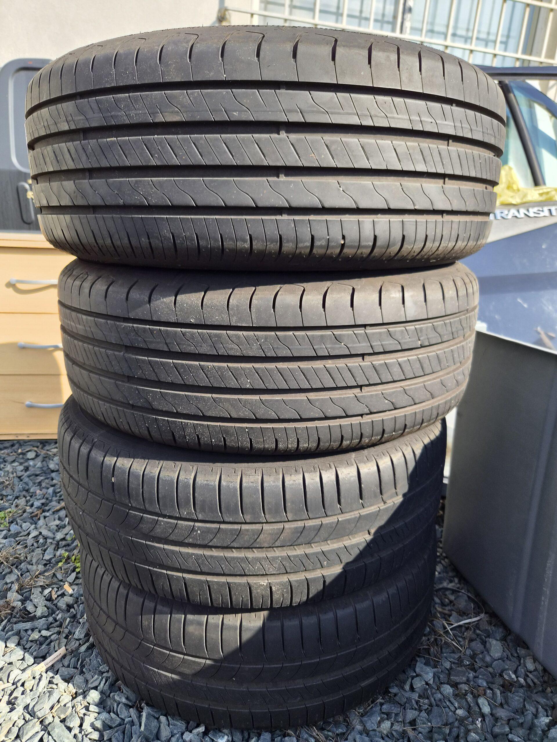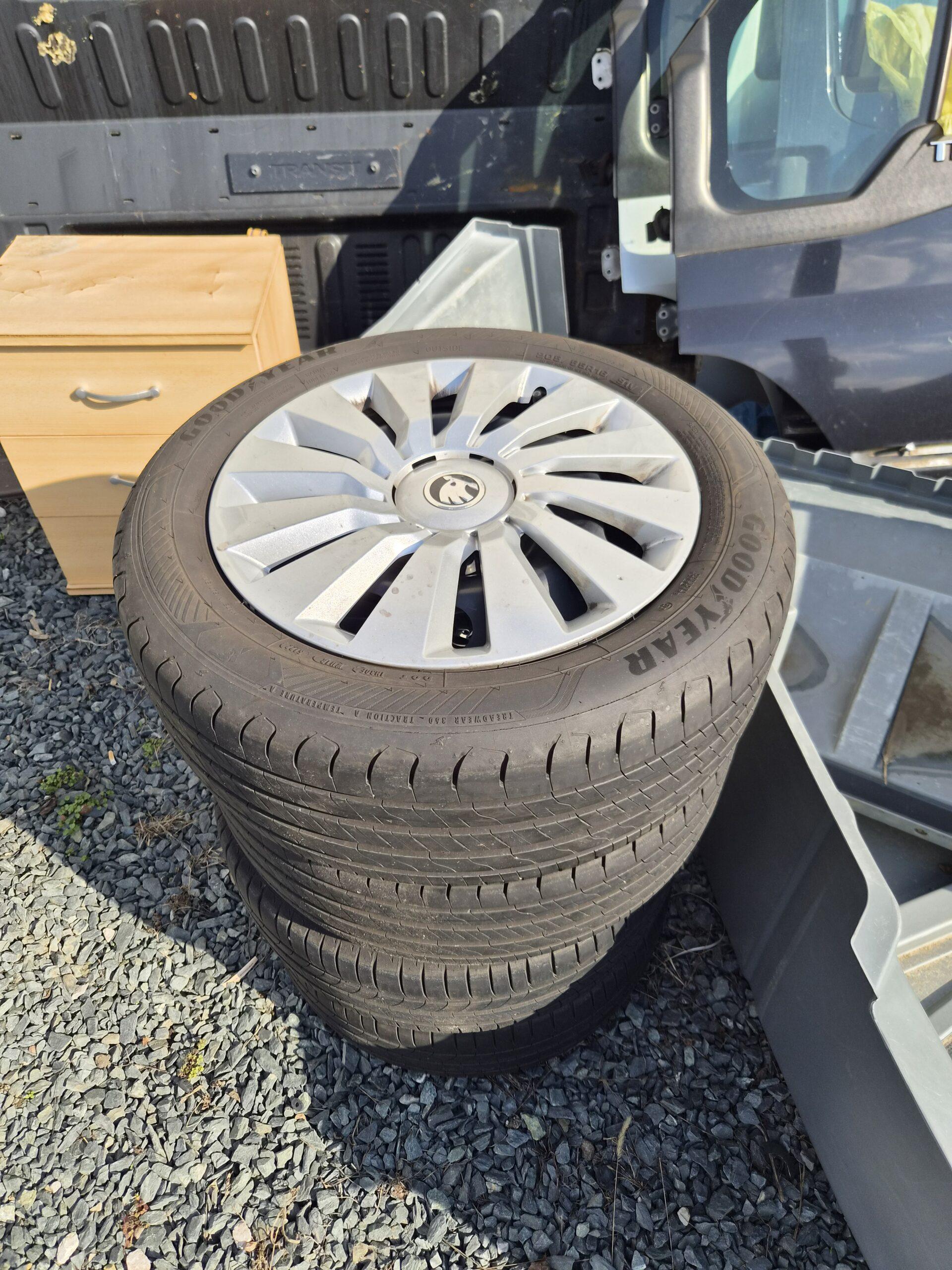 Dvě sady kol, zimní pneu na litých kolech a druhá sada jsou letní.
